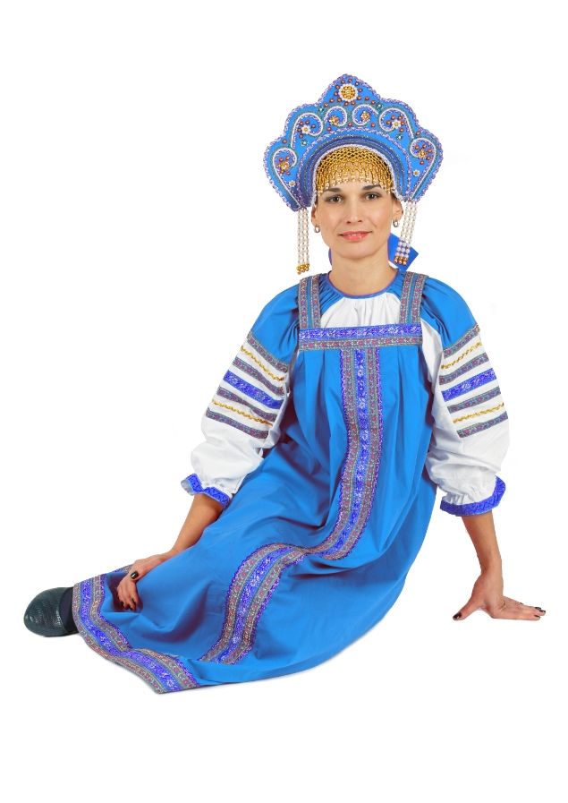 Дополнить синий костюм Дуняша можно купив кокошник и подобные аксессуары.