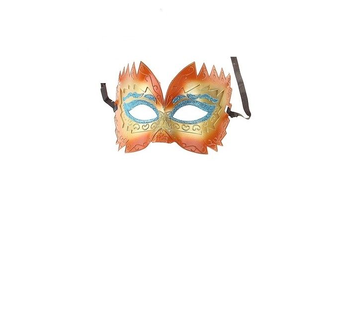 Маска с острыми концами золотистого цвета и оранжевой окантовкой. Маска поможет вам создать яркий неповторимый образ для веселой карнавальной вечеринки и поразить окружающих. Маска сделана из пластика и имеет размер 17х22 см.