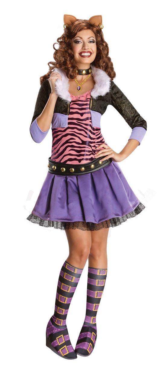 Клодин Вульф - это сногшибательная красотка из серии Monster High, которая обожает моду и всегда очень стильно одевается. Костюм Клодин Вульф из Monster High состоит из короткой курточки с меховым воротником и рубашки, фиолетовой юбочки, черного ремня на шею, бахил на обувь. Дополнительно на нашем сайте вы можете приобрести парик Клодин Вульф.