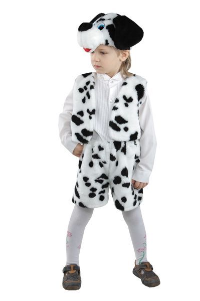 В комплекте костюма имеются пятнистые шортики, жилет и шапка-маска далматинца.