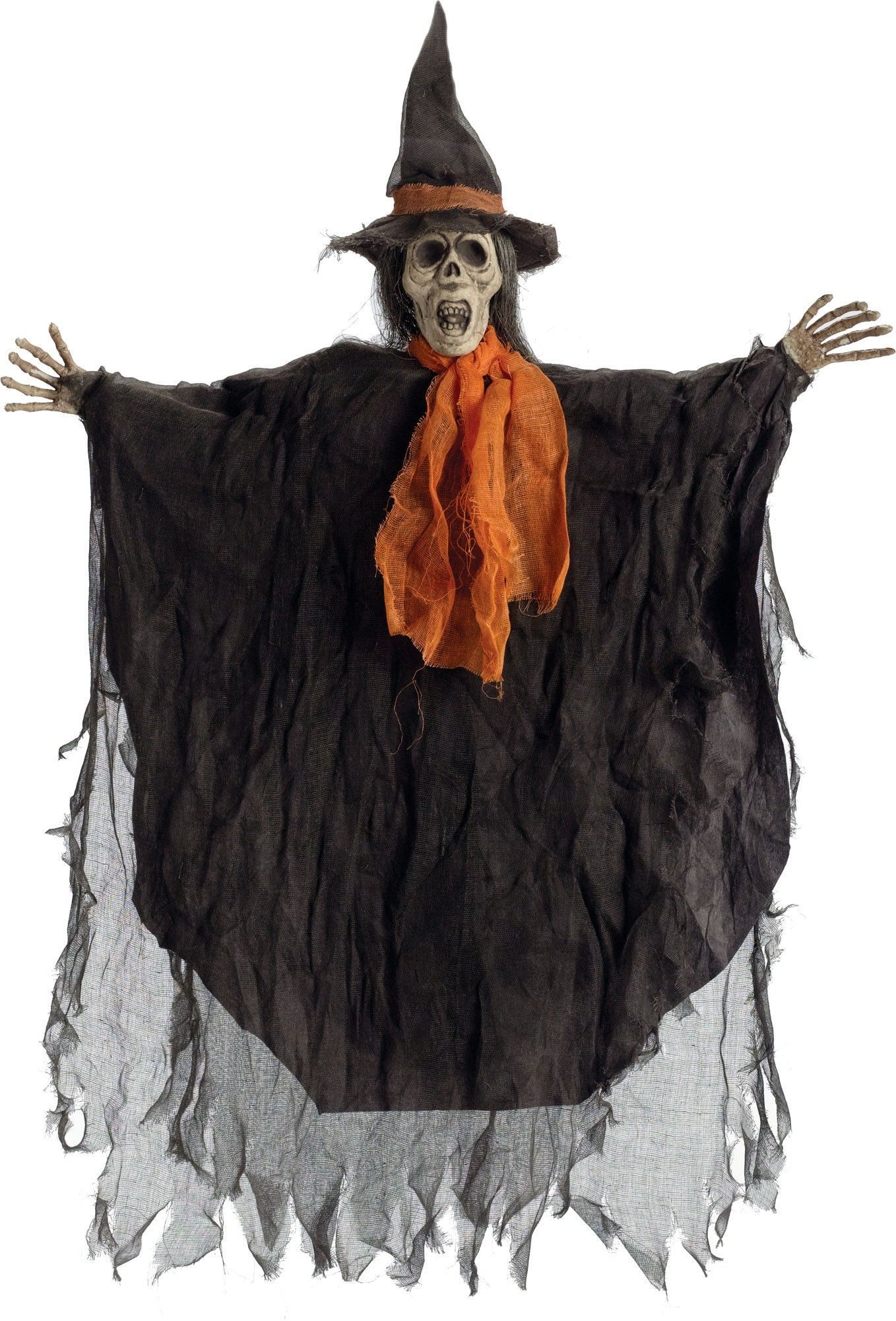 Подвесная фигура ведьмы высотой 90 сантиметров создаст отличную атмосферу для проведения тематической вечеринки, а так же подходит для украшение фасада здания. Для заказа имеются фигуры в виде: фигура в виде крика, фигура в виде смерти в черной мантии с цепями, фигура в виде ведьмы, фигура в виде тыквы.