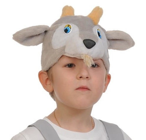 Плюшевая маска Козлика выполнена из мягкого материала серого цвета. Маска в виде мордочки козлика с ушками и небольшими рожками.