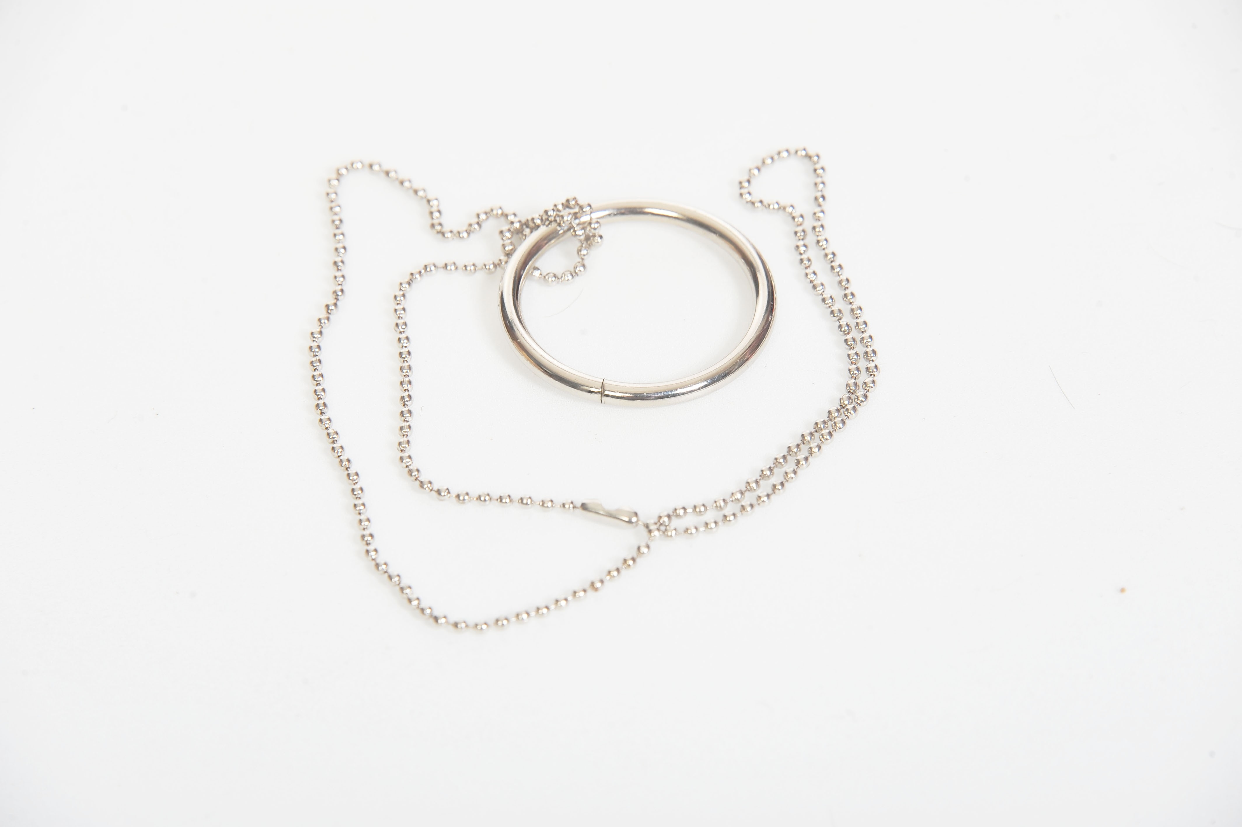Набор фокусника Кольцо с цепочкой включает в себя серебряное металлическое кольцо с прорезью, а также серебряную тонкую цепочку.