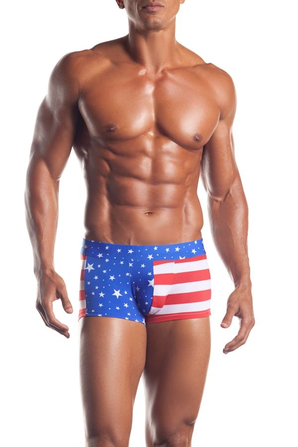 Мужские трусы Патриот - это облегающие трусы-боксеры, выполненные в расцветке флага США. У трусов удобная эластичная резинка синего цвета с белыми звездочками.
