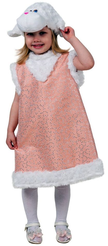 Овечка Карамелька будет отличным образом для утренника, хоровода у елки и самого главного праздника в году - Нового года. Костюм состоит из сарафана с белыми оборками из искусственного меха и шапочки в виде мордочки овечки.