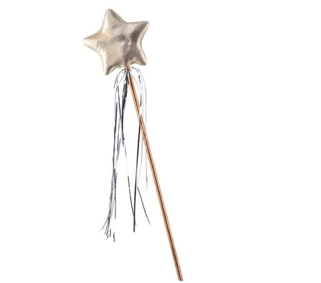 Золотистая волшебная палочка феи станет отличным дополнением к сказочному наряду феи или принцессы. Палочка выполнена в золотистом цвете и украшена золотистой звездой и мишурой.