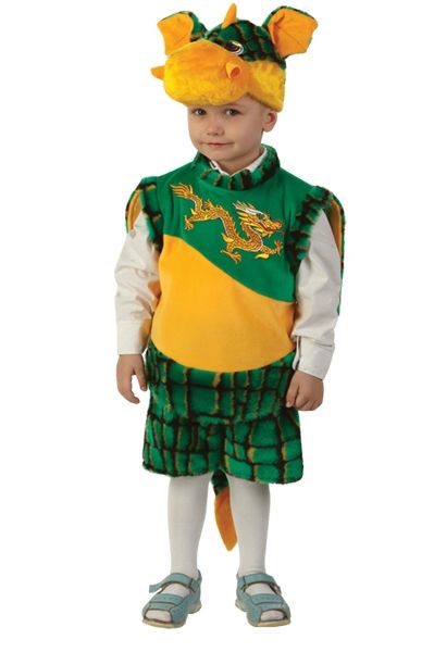 Костюм веселого дракоши состоит из шортиков, безрукавки с крылышками и хвостиком, а также шапочки в виде головы дракоши.