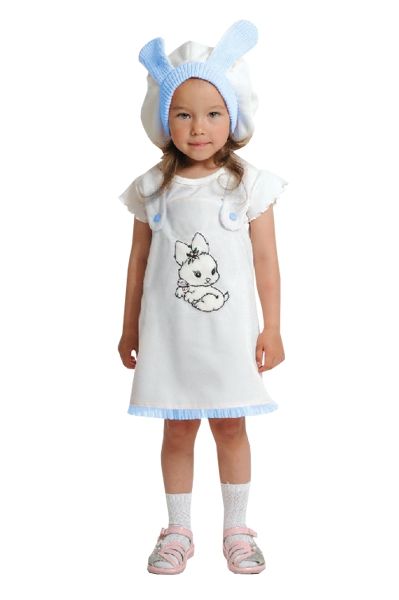 В комплект костюма беленького зайчика входит платьеце и шапочка с ушками.