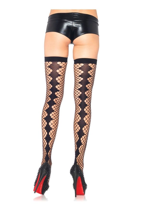 Чулки в сетку с узкой резинкой и черной вставкой в виде ромбов по всей длине ноги. Чулки можно надеть к различным комплектам белья или карнавальным костюмам в стиле "Алиса в стране Чудес".