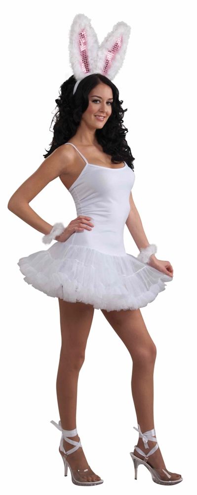 Белое платье с пышной юбкой идеально для новогодних праздников. Добавив к нему некоторые аксессуары вы сможете получить прекрасный неповторимый образ. Платье на тонких бретельках с пышной короткой юбочкой. Ушки и манжеты в комплект не входят.