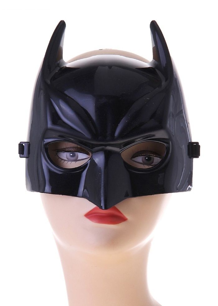 Маска Бэтмена черного цвета. Маска сделана из пластика и имеет размер 16х18 см.