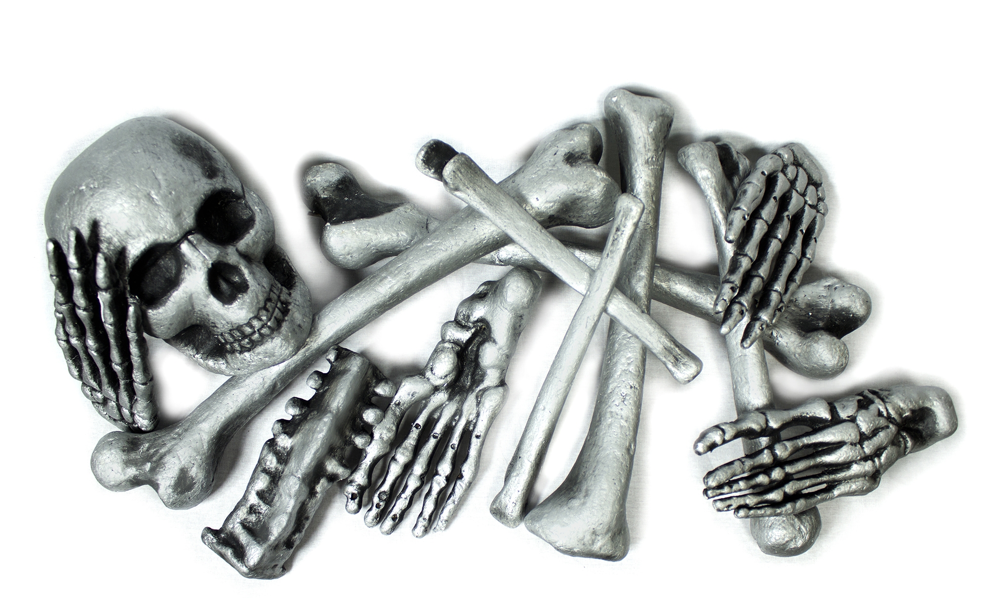 Серебряные кости скелета 12 шт - набор из костей, выполненных из пенопласта , которые покрыты серебряной краской.