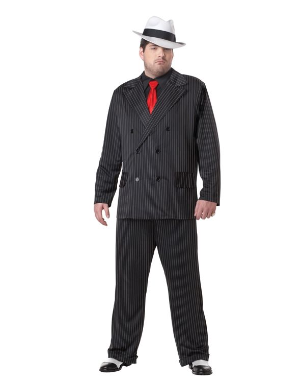 Черный костюм босса мафии PLUS - это строгий костюм, который сделает из вас настоящего главаря банд. В комплект костюма входит пиджак на пуговицах, брюки, черная рубашка, красный галстук и подтяжки. Брюки и пиджак выполнены в черном цвете с белой тонкой полоской. Шляпа в комплект не входит - ее можно приобрести отдельно (арт. ККЖ-5715).