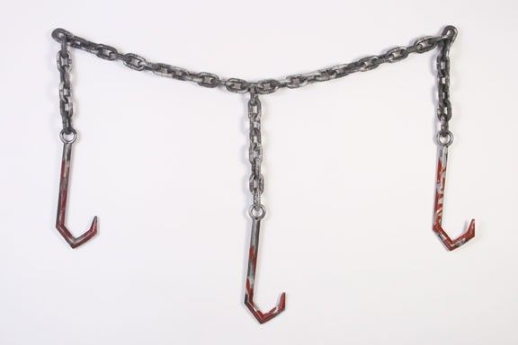 Кровавые крюки мясника - это хорошая декорация на Хэллоуин, Пятницу 13 и подобные жуткие праздники. Три кровавых крюка на цепи - не хватает только три туши.( прочие аксессуары для дополнения образа вы также найдете в нашем каталоге).Рекомендации по уходу: Только чистка по месту загрязнения.