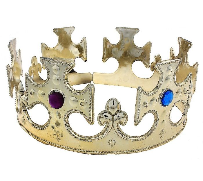 Царская корона - круглая корона, выполненная в золотистом цвете с узорами в виде крестов. Корону украшают искусственные круглые камни.