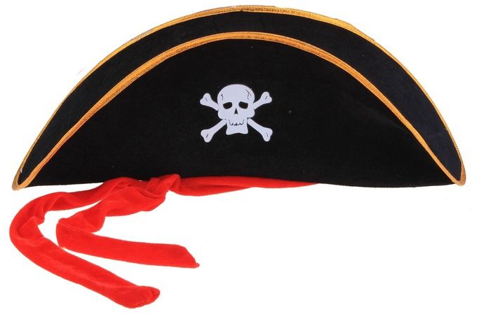 Шляпа пирата с черепом - это черная шляпа с золотистой окантовкой, украшенная красной тканью в виде банданы и нашивкой с белым черепом. Идеально дополнит пиратские костюмы и станет ярким аксессуаром на тематических вечеринках.
