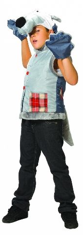 Костюм волчонка серого состоит из серой жилетки с клетчатыми карманами и хвостом сзади, шапку в виде головы волка и лап варежек. Лесной разбойник любит бывать в компании своих друзей лисы и медведя, их костюмы тоже можно у нас купить.