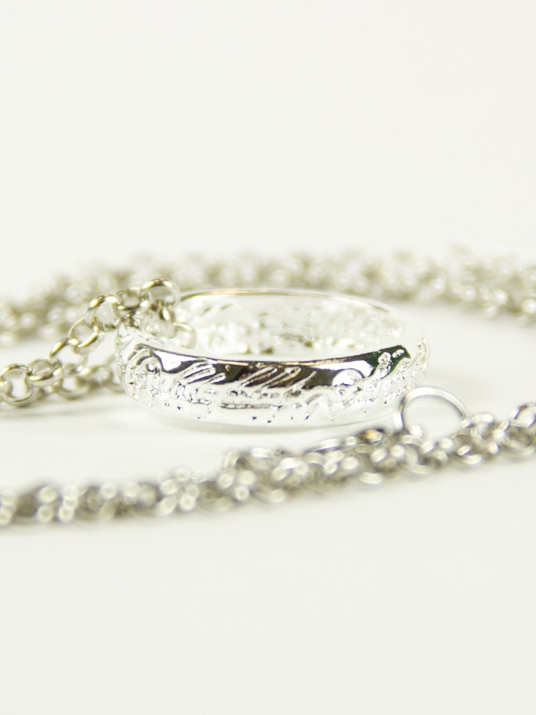Серебряное Кольцо Всевластия крепится к серебряной цепочке. Кольцо Всевластия - это отличное дополнение к образу из фильма "Властелин колец". Кольцо выполнено в серебряном цвете, на нем объемная надпись на эльфийском языке.