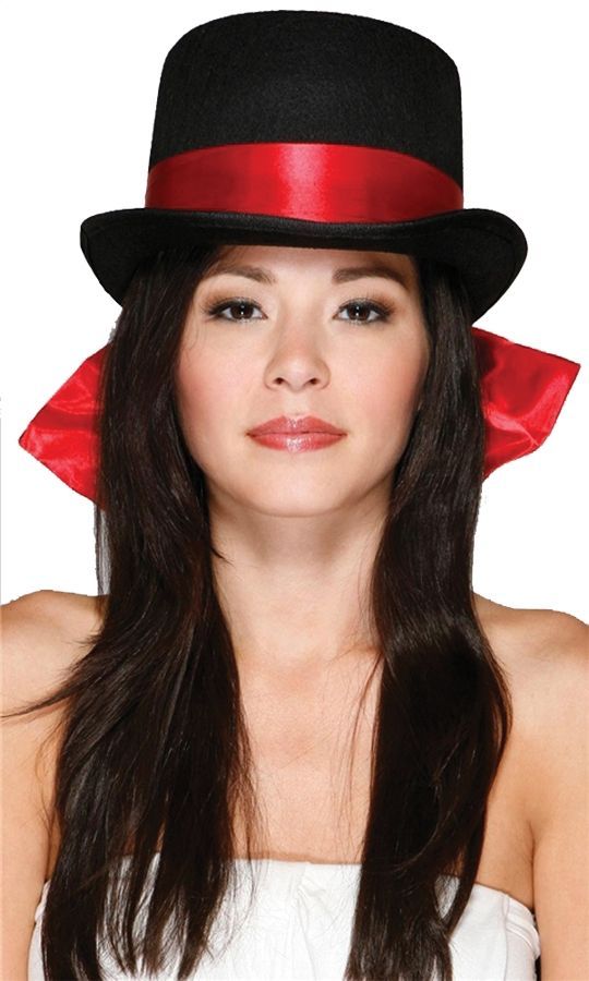 Шляпа вампира в виде цилиндра с большим красным бантом поможет вам завершить наряд кровопийцы и стать самой модной вампиршей на вечеринке.