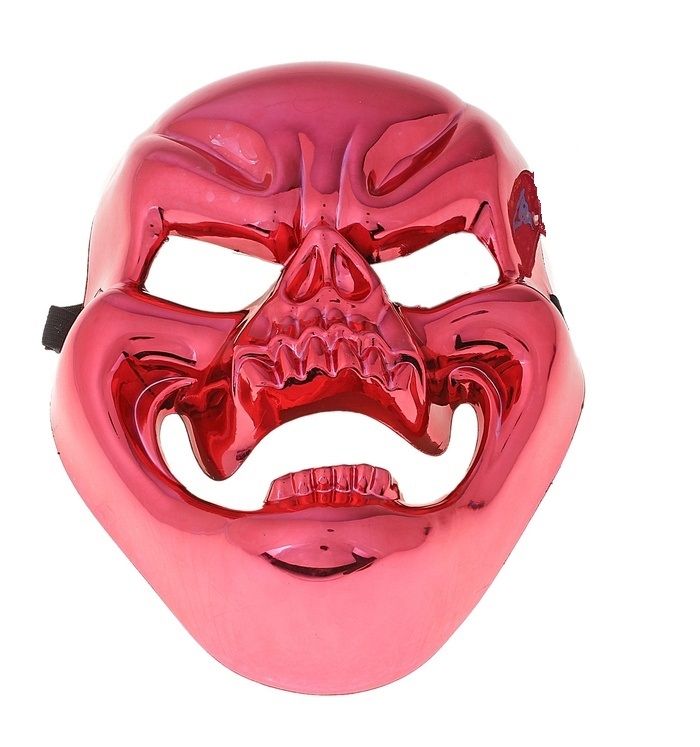 Красная маска смеющегося черепа сделана из пластика и имеет размер 18х25 см.