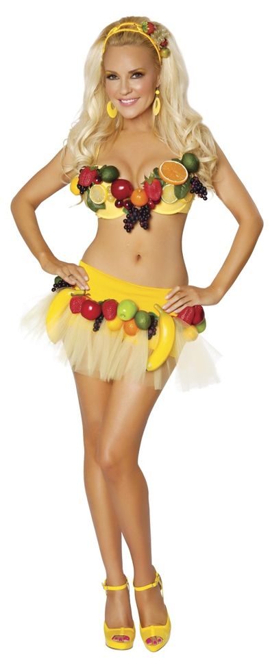 Этот весёлый костюм фруктовой девочки непременно понравится забавным озорным девушкам. В таком костюме можно пойти на различные маскарады и карнавалы, и принести туда море позитива. Этот наряд порадует каждого.