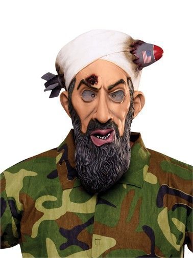 Маска Бен Ладена, самого знаменитого террориста, подойдет для различных маскарадов, тематических вечеринок и других мероприятий. Маска представляет собой худощавое лицо с густой бородой, косыми глазами, пулей во лбу и ракетой в голове. Маска выглядит весьма реалистично.