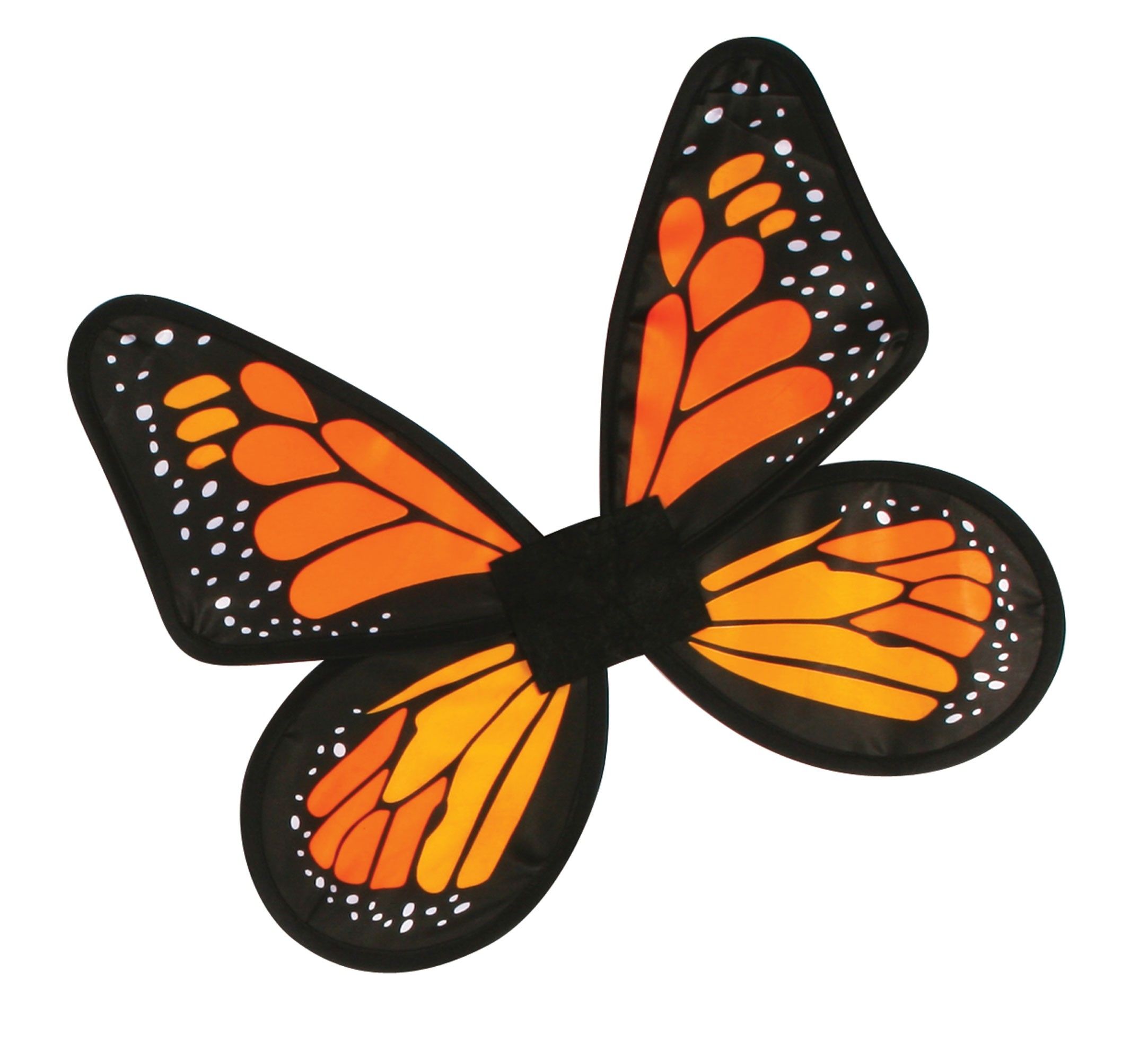 Оранжевые детские крылья Бабочка выполнены из атласного материала в виде бабочки. Крылья сочетают в себе яркий оранжевый цвет и черный в качестве прорисовки узоров и отделки.