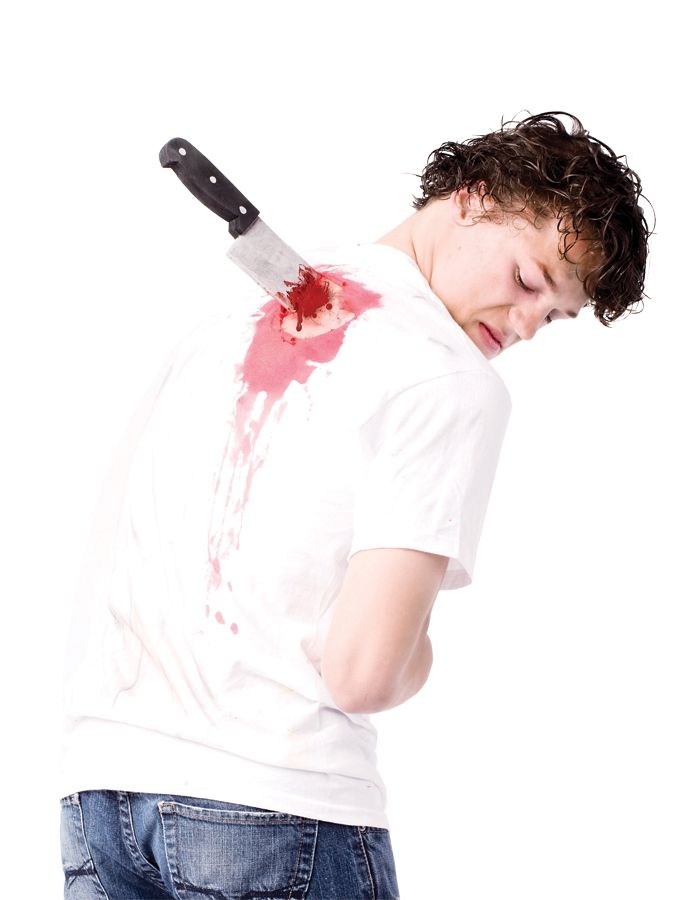 Накладной нож в спину прекрасный грим для Хэллоуина, Пятницы 13 и выступлений. Добавив к нему искусственную кровь, вы получите весьма реалистичную рану.