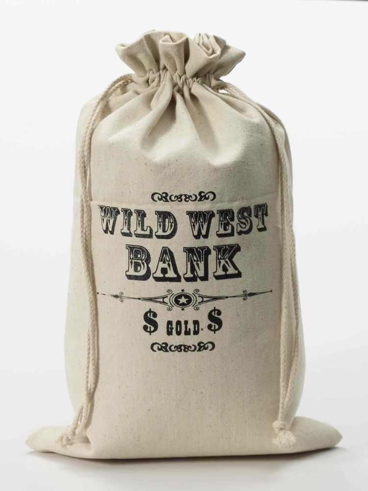 Карнавальный мешок с деньгами. Этот предмет идеально подойдет, если вы занимаетесь обстановкой тематической вечеринки в стили Дикого запада. Установите несколько таких мешков на месте предполагаемого банка и вы увидите как преобразиться помещение. Размеры: 30х48см.