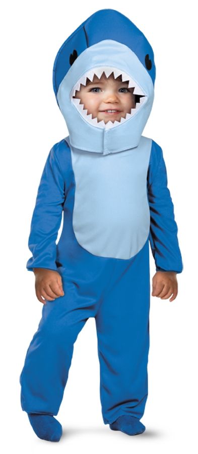 Забавный детский костюм акулы для маскарадной вечеринки на морскую тематику. Костюм состоит из комбинезона, головного убора и плавника. Расплывайтесь маленькие рыбешки кто куда! Акула вышла на охоту.