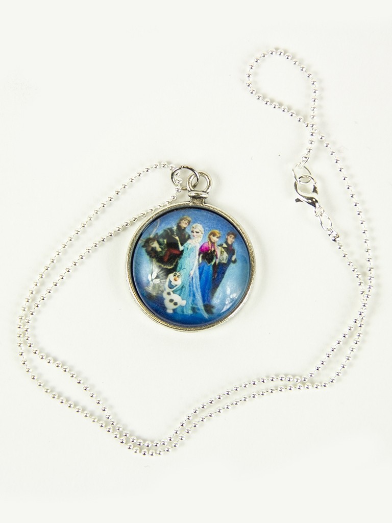 Подвеска Холодное сердце украшено изображением героев из мультфильма "Холодное сердце". Подвеска крепится к тонкой цепочке серебристого цвета. Обратная сторона выполнена в виде часов.