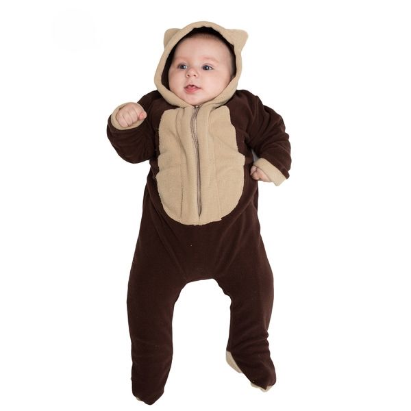 Костюм малыша мишки - коричневый комбинезон из флиса, застегивающийся на молнию. Комбинезон с капюшоном с ушками.