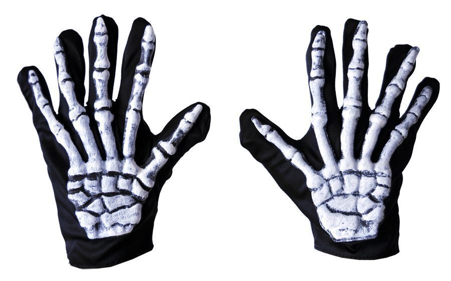 Перчатки для скелета станут прекрасным дополнением к костюмам скелетов и подобным образам. Перчатки выполнены из чёрной ткани с наложенным латексным рисунком.