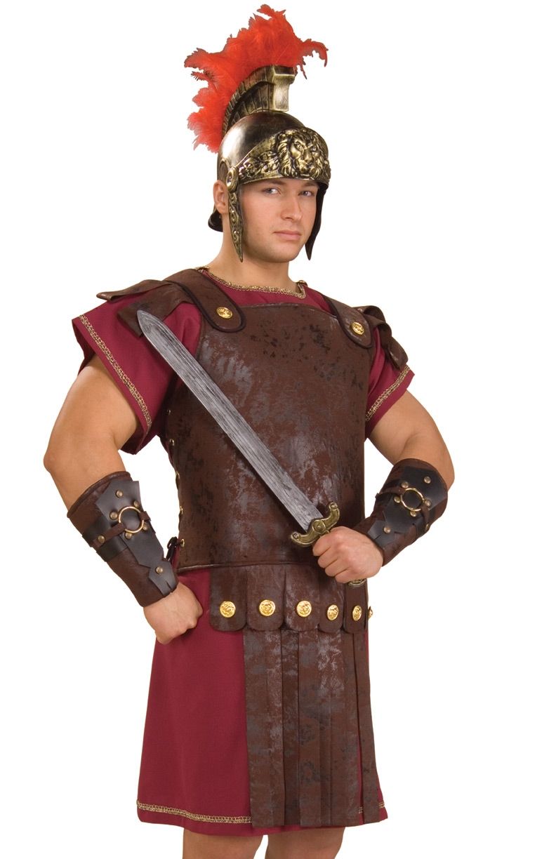 Римские доспехи на грудь выполнены в коричневом цвете. Они прекрасно дополнят костюм Римского воина. В комплект входят только жилет выполненный в стиле доспехов легионера. Шлем и меч можно купить у нас отдельно.