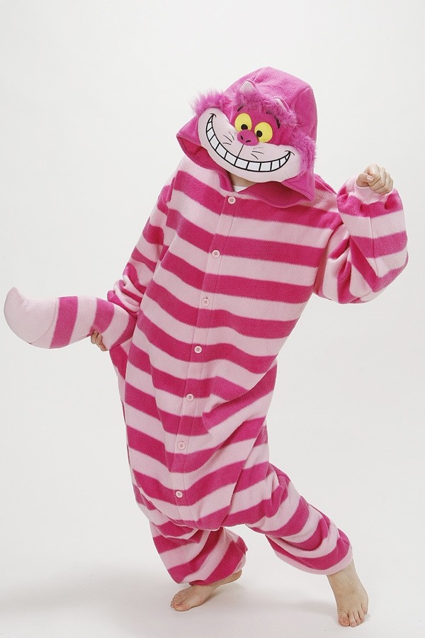 Кигуруми Чеширский кот - яркая розовая полосатая пижама, которая представляет собой одного из персонажей мультфильма и сказки про Алису в стране Чудес. Кигуруми из мягкого флисового материала. Застегивается при помощи пуговиц. Капюшон выполнен в виде мордочки Чеширского Кота с его знаменитой растянутой улыбкой. Также сзади пришит хвост.