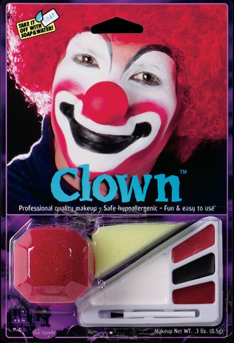 Набор для макияжа Клоун подойдет для веселых тематических вечеринок и выступлений. В наборе имеется лоток с косметикой красного, черного, бардового и белого цветов и небольшая кисточка, также есть губка и красный нос для дополнения образа.
