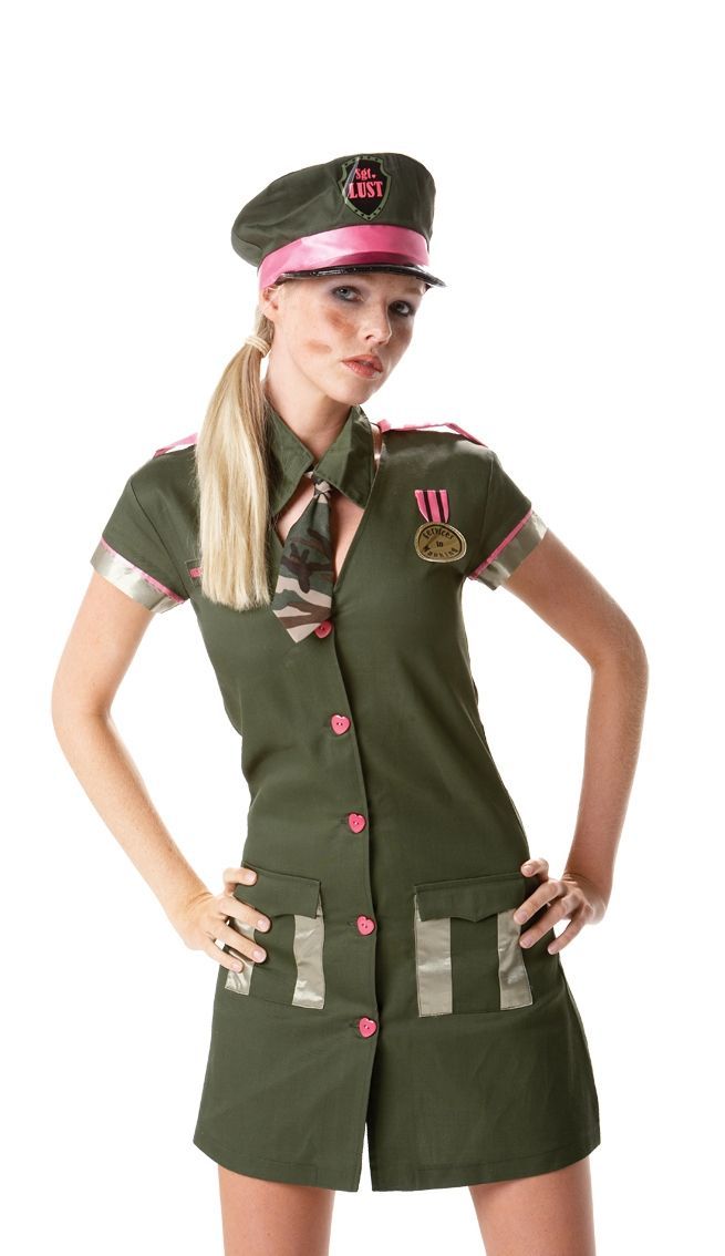 В нашем оригинальном, симпатичном костюме армейской озорницы вы будете настоящей королевойй казармы. В комплект входят: платье, головной убор, галстук.