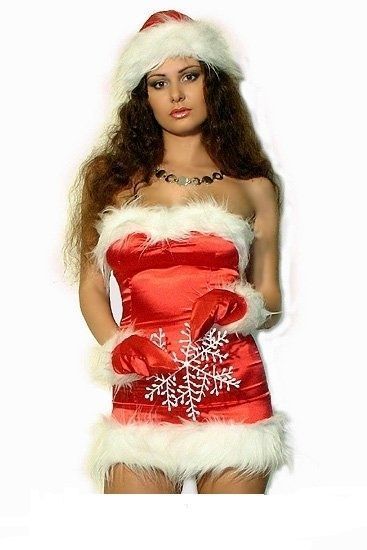 Костюм стильной Снегурочки это обтягивающее платье с белой опушкой, перчатки и головной убор. Развейте все стереотипы о том, что Снегурочка - это скромная внучка Дедушки Мороза. Сделайте праздник еще более ярким и веселым. В комплекте идут силиконовые бретельки.