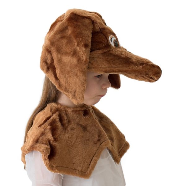 Комплект собачки Таксы эконом - меховой комплект коричневого цвета, в состав которого входит шапочка-маска с длинным носиком и ушками, а также мягкая накидка на плечи.