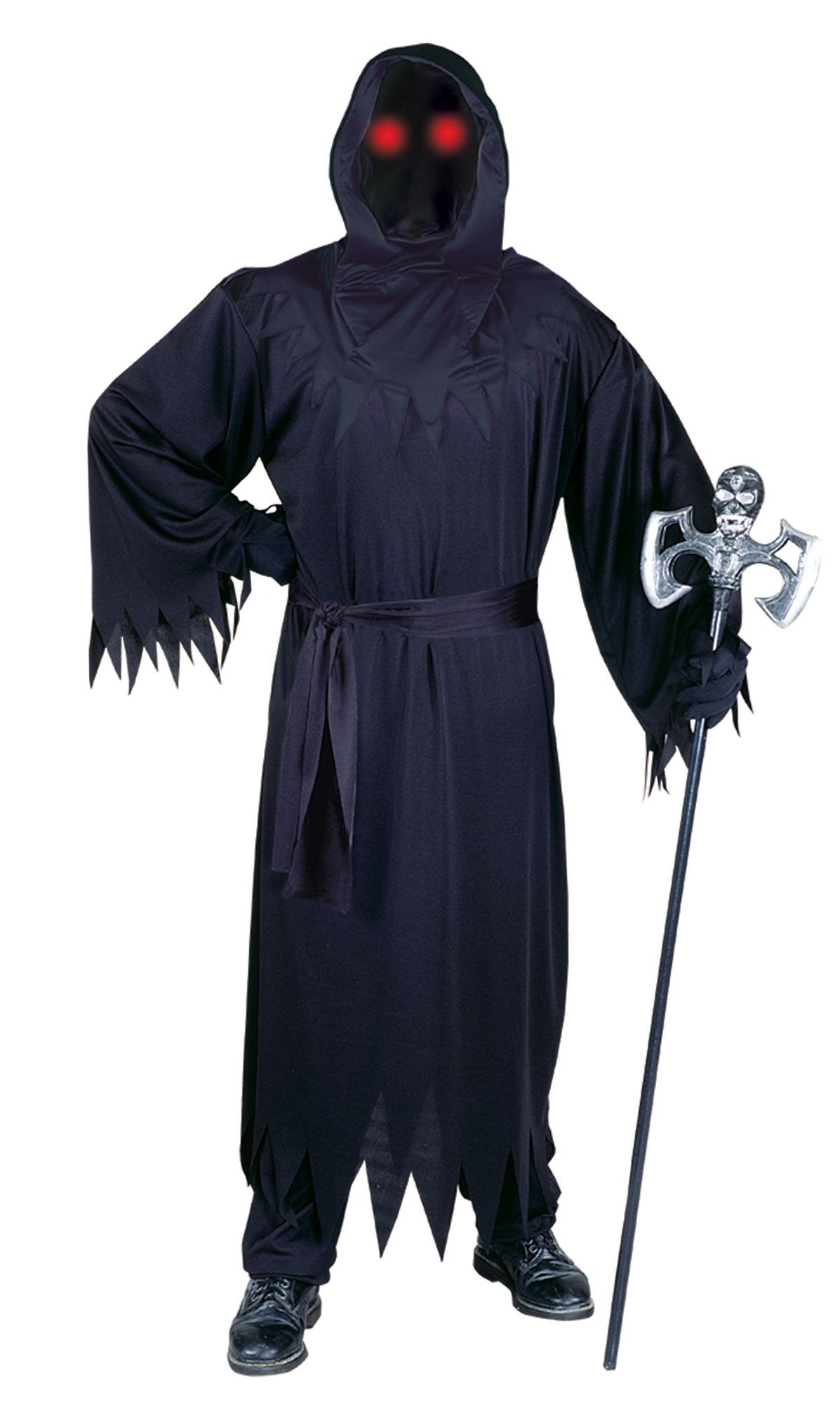 Костюм неизвестного фантома включает в себя черное длинное одеяние с зубчатым подолом и манжетами, капюшон с воротником, черные перчатки, пояс, а также светящиеся очки.