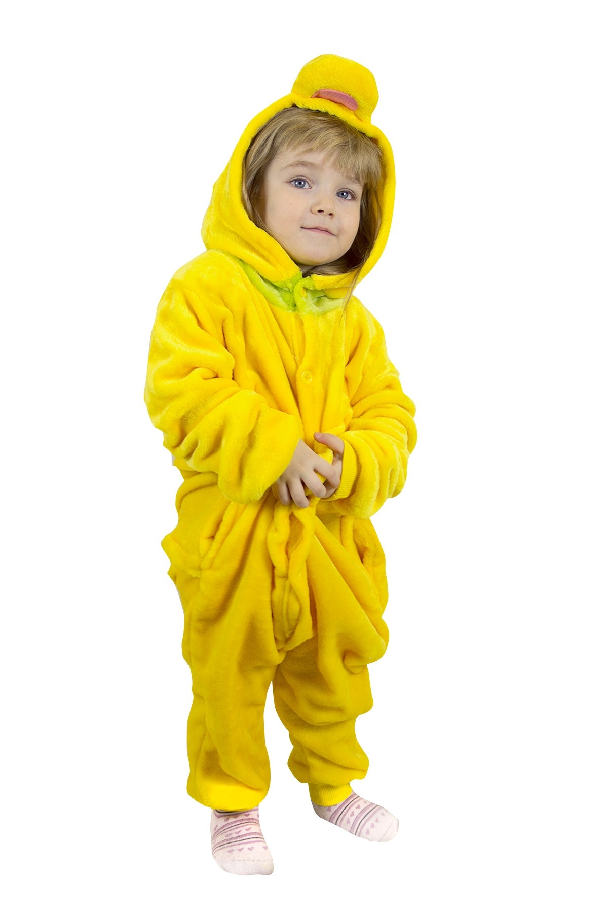 Детская пижама кигуруми Плуто - яркая пижама желтого цвета, выполненная в образе диснеевского героя - собачки Плуто. Капюшон кигуруми выполнен в виде мордочки Плуто с длинными черными ушками. Также его дополняет длинный черный хвост.