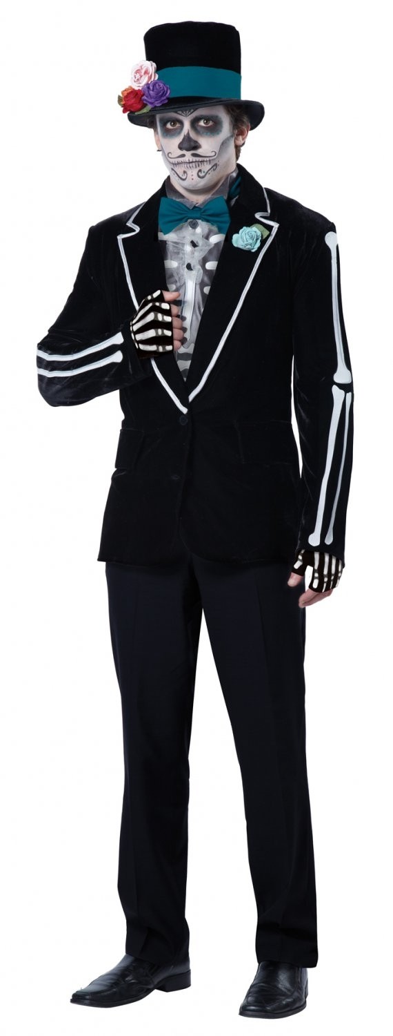Костюм умершего жениха выполнен в стиле нарядов в честь мексиканского праздника День мертвых. Костюм включает в себя черный пиджак с рисунком из белых костей, рубашку с прикрепленным галстуком-бабочкой, шляпу-цилиндр, четыре разноцветных розочки на булавках, короткие перчатки без пальцев и набор для нанесения грима.