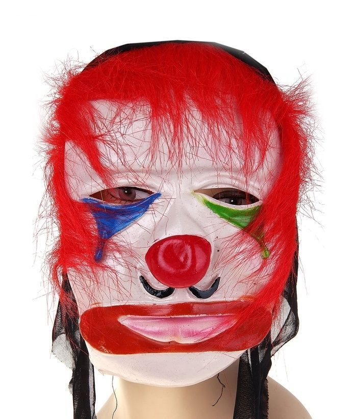 Маска грустного клоуна с красными волосами, маленькими усиками и печальной улыбкой. Маска сделана из латекса и имеет размер 16х27см. Карнавальная маска подойдет для детских праздников, где ребята с удовольствием попробуют поднять своим смехом настроение грустному клоуну.