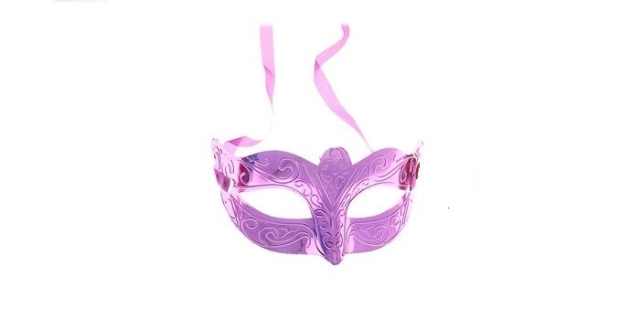 Фиолетовая маска с узором. Маска изготовлена из пластика и имеет размер 7х7,5х16 см.