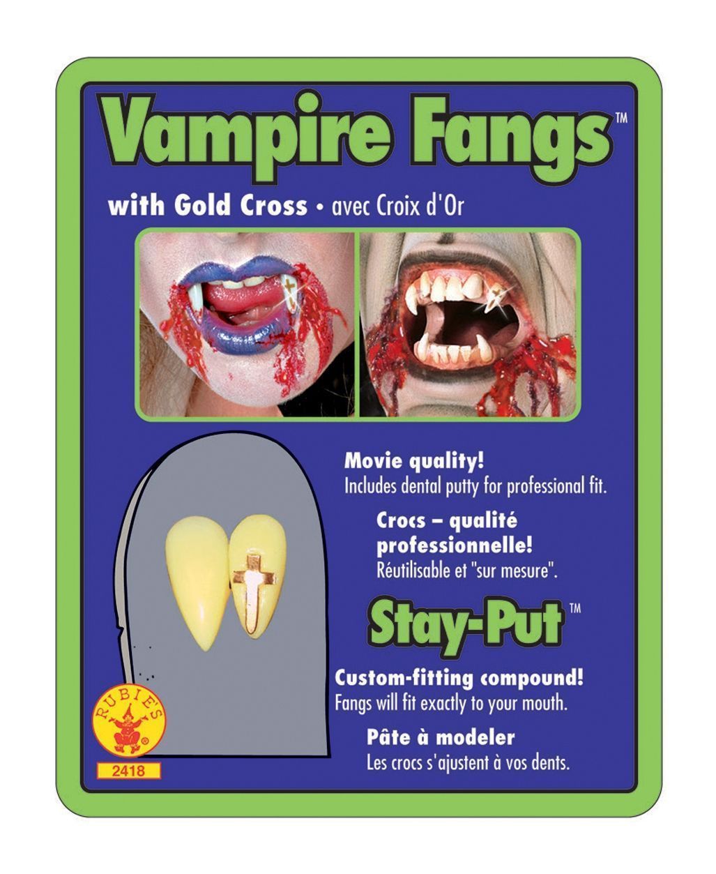 Вампирские клыки идеально дополнят образы вампиров и подобные. В комплекте имеется два желтоватых клыка со стразами на каждом. Можно использовать многократно.