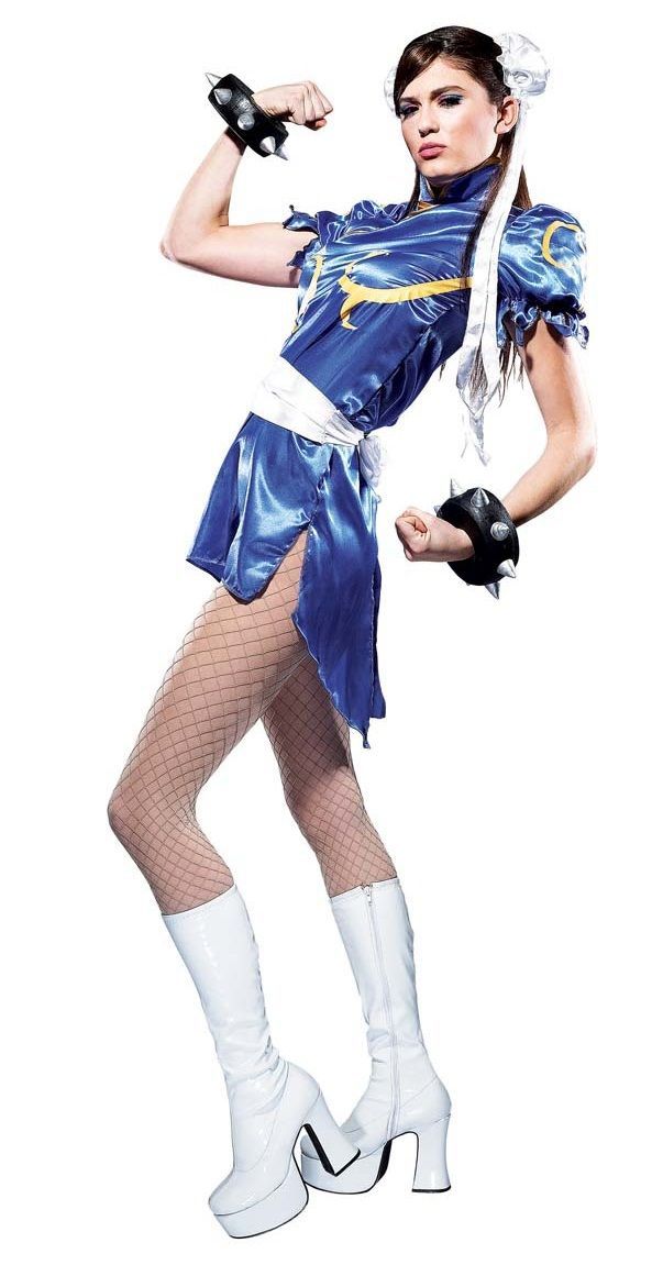 Чан Ли - персонаж из небезызвестной игры "Street Figter". Костюм включает в себя голубое платье с поясом, воротник, банты для волос и браслеты. Такой костюм подойдёт для косплея, выступлений и маскарадов. Добавьте к костюму свои аксессуары и вы получите неповторимый образ. Имитация винила.
